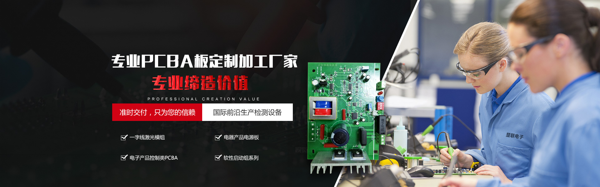 專注于生產銷售一字線激光模組、電器產品電源板、電子產品控制類PCBA、軟性啟動組系列等電子產品,產品不良率一直控制在1%以內;